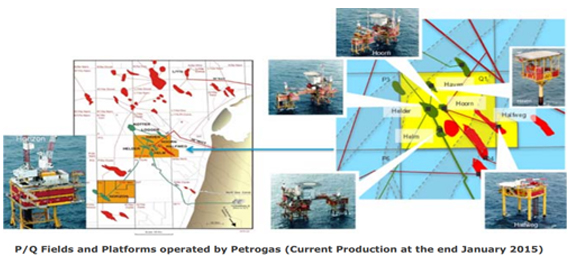 PEPN has been active in the Netherlands since the mid-1960s and producing Oil since 1982 (then operated by Unocal). First production from the Helm and Helder platforms in block Q1 took place that year. This was celebrated in 2012, marking a significant milestone as 30 years of offshore oil production. Currently there are 6 platforms in the P/Q fields operated by Petrogas.